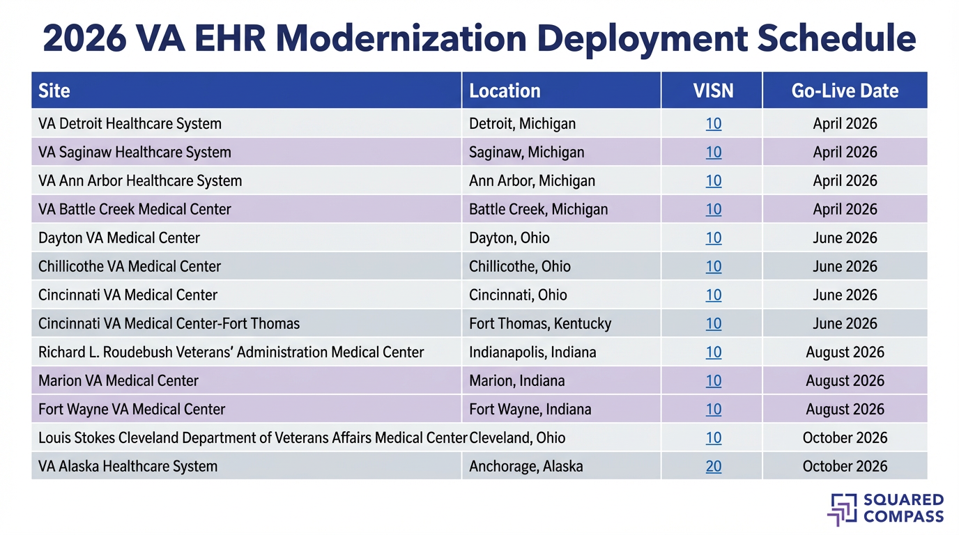 2026 VA EHR Modernization Deployment Schedule and Go-Live Locations